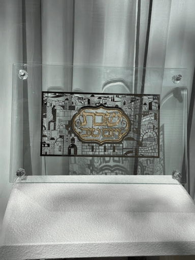 סט הפרשת חלה דמוי עור לבן "אותיות בולטות"